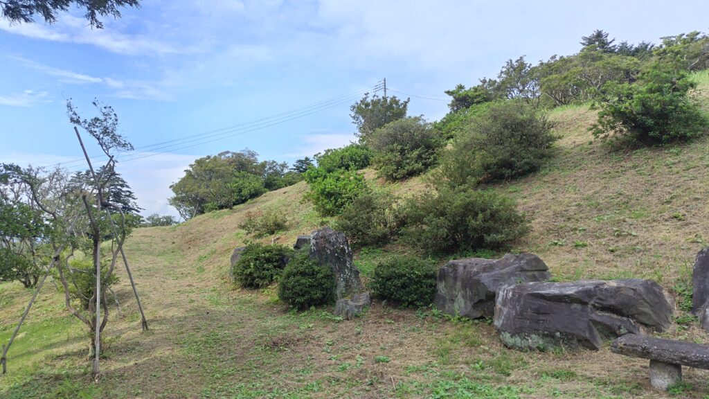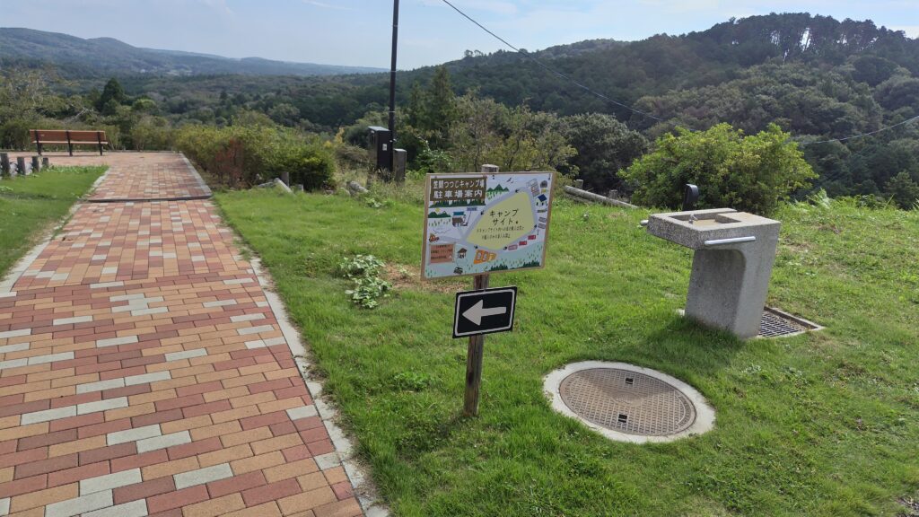 頂上付近は平らにならされた上に芝生が植えられており、キャンプサイトとして運営しているようです。立派なトイレもあり、眺望も良い。