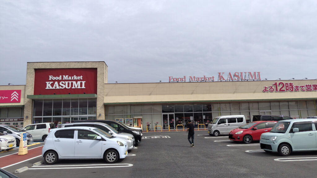 笠間稲荷前の門前通りを通って、カスミ 笠間店に到着。食材とお酒を購入。クーラーバックに収納後、隣のコメリへ車を移動し、CB缶3本とサンダルを買って出発。