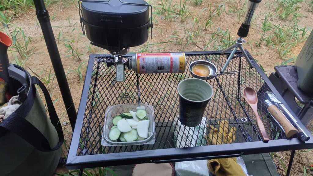 少々窮屈になるので、今回はイワタニのシングルバーナーで済ませました。