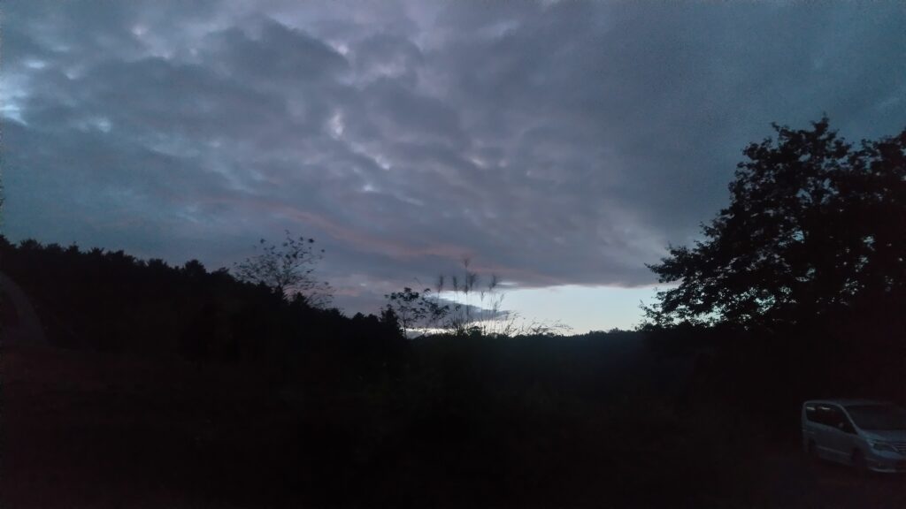 天候は小雨が降り続き、時折強くなる瞬間がある程度。風は無かったのですが、焚火は早々に諦めて道具も車から降ろしませんでした。