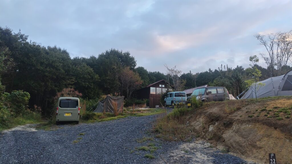 焚火をするか迷ったのですが、周辺のサイトに結構な数のお客さんが入っていたので、早朝から音を立てるのもと思い断念。