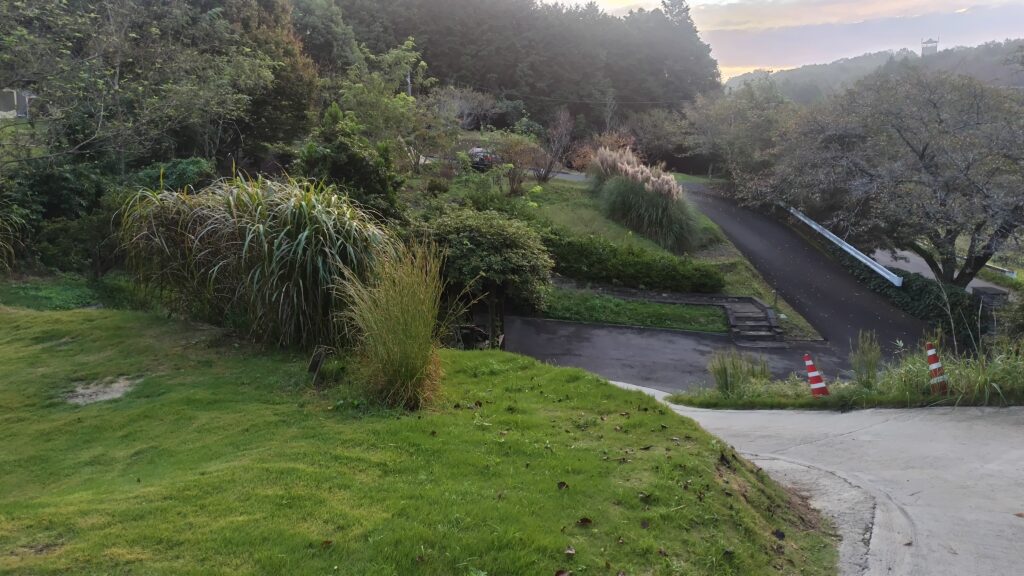 チェックインのたびに注意される「問題のある坂」。確かに勾配や曲がりが急で幅員も狭く大型車では厳しそうなのですが、これぐらいの坂は他のキャンプ場でも見かけることはあります。