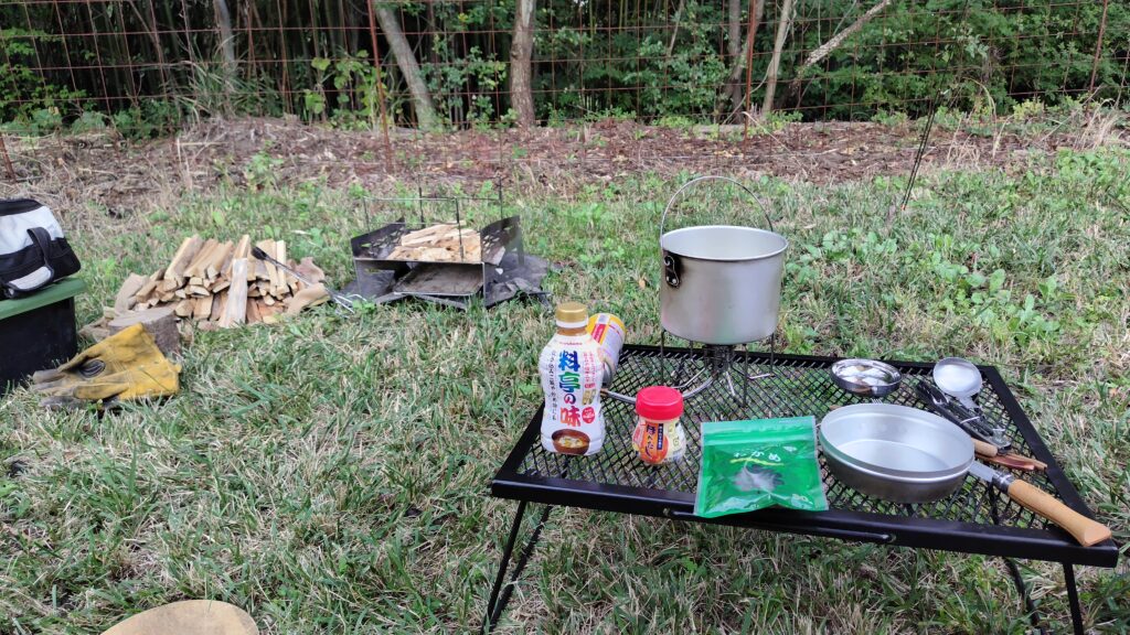 だいぶ遅めの昼食となったので昼寝をせず、焚火の準備などしながらだらだらと過ごす。