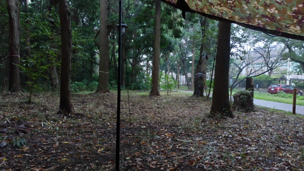 撤収作業中も小雨は降り続いていたが、木の下だったのでそれほど濡れず。