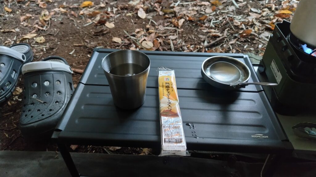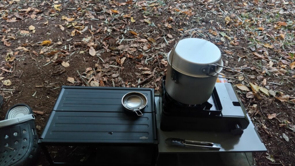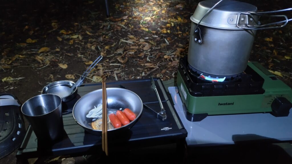 15時頃、幕をたたく雨音で目を覚ます。少々時間が早いが、この後天候が回復する様子もなかったので夕食の準備を始めることに。