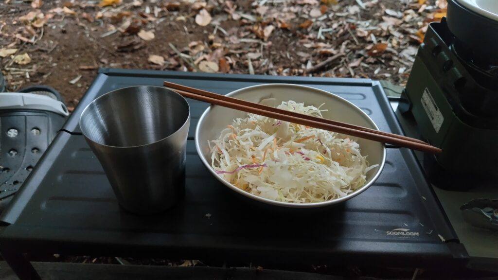 翌日まで雨予報だったので、幕内でタフまる頼りになることを踏まえて食材を選択。同一敷地内にDCMもあるのですが、そちらにも寄りませんでした。